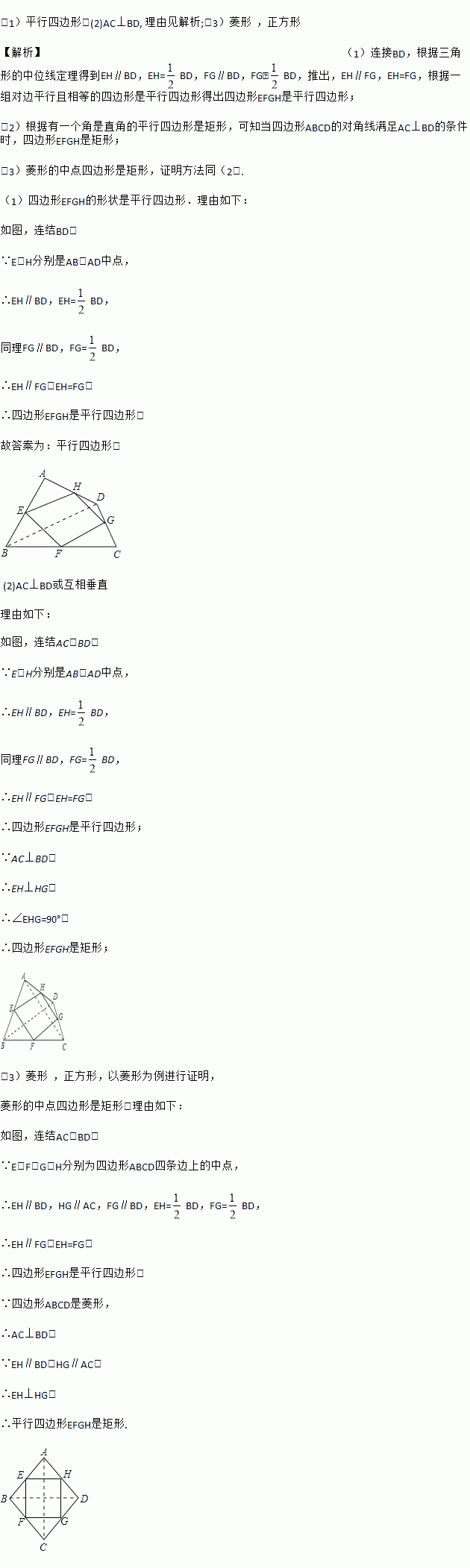(2)当四边形ABCD的对角线满足______ 条件时,四边形EFGH是矩形并证明你的结论.