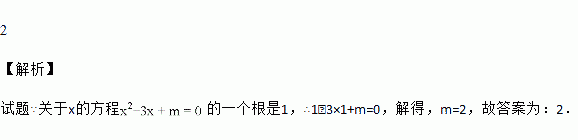 已知关于x的方程x2-3x+m=0的一个根是1,则m=__________.