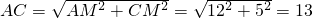 (2)若BC=10,BC边上的中线AM=12,试求AC的长.