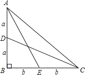 分析:如图,在Rt△ABE与Rt△CBD中,利用勾股定理列出关于a、b的方程组,通过解方程组求得a、b的值;然后在Rt△ABC中根据勾股定理来求斜边AC的长度.