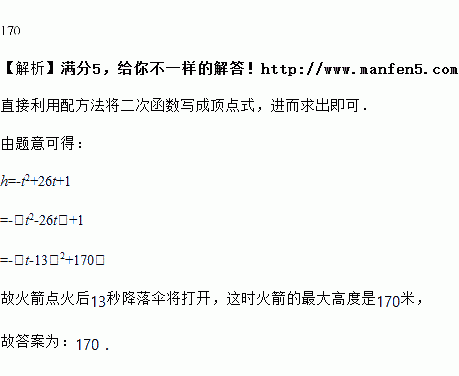 某校有航模组设计制作的火箭,它的升空高度与飞行时间满足函数关系式,则该火箭升高的最大高度是________.