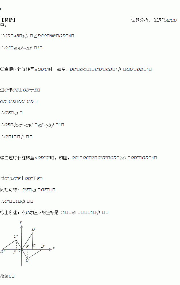,OD=4,将矩形ABCD绕点O旋转,使点D落在x轴上,则点C对应点的坐标是