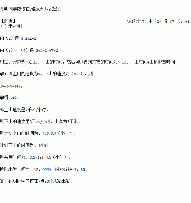 若依据以上信息和计划登山游玩,请问:孔明同学应该在什么时间从家出发?