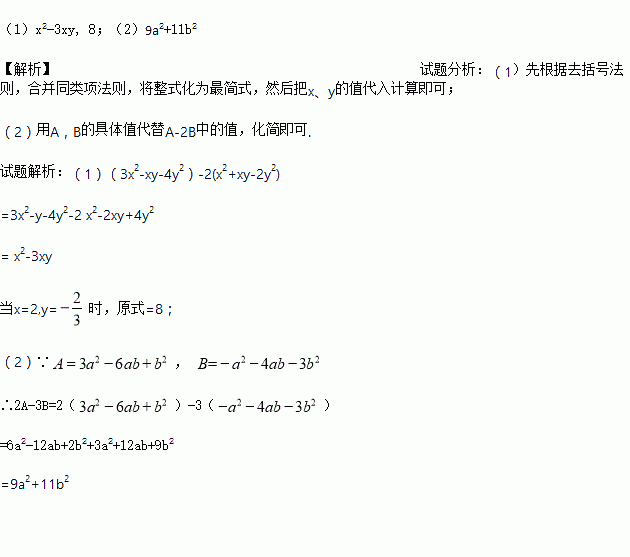 (2)已知, ,求2A-3B.