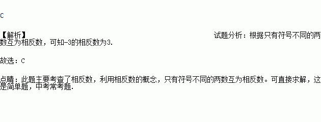 -3的相反数是( )
