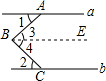 分析:如图,首先过点B作BE∥a,由a∥b,可得a∥b∥BE,根据平行线的性质,可得∠1=∠3,∠2=∠4,所以可以求得∠ABC的度数.