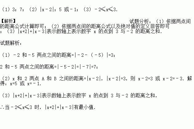 (1)数轴上表示﹣2 和﹣5 两点之间的距离是 ,数轴上表示 2 和﹣5 两 点之间的距离是 .