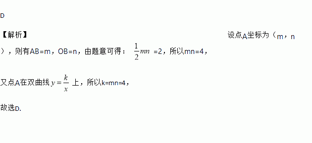 如图,点A为函数(x>0)图象上的一点,过点A作x轴的平行线交y轴于点B,连接OA,如果△AOB的面积为2,那么k的值为( )