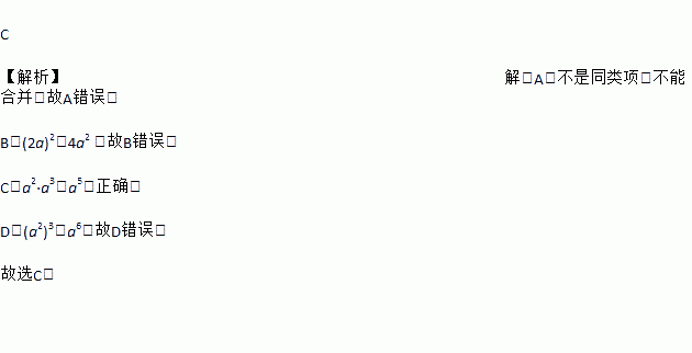 A. a2+a3=a5 B. (2a)2=4a C. a2·a3=a5 D. (a2)3=a5