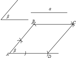 分析:可先作∠A=∠β,在∠A的两边上截取AB=AD=a,以点B、D为圆心,以a为半径画弧,两弧交于点C,依次连接各点即可.