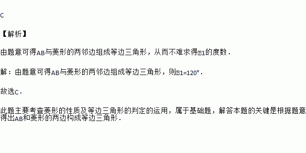 如图4,一活动菱形衣架中,菱形的边长均为16cm,若墙上钉子间的距离AB=BC=16cm,则∠1等于