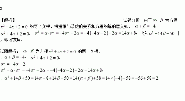 已知α,β为方程x2+4x+2=0的两实根,求α3+14β+50的值?