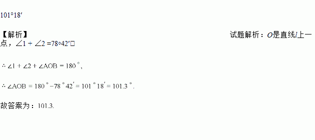 如图,O是直线l上一点,∠1+∠2=78°42′,则∠AOB=_____.