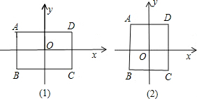 ①以对角线为交点为坐标原点,以平行于长边的直线为x轴,平行于短边为y轴建立平面直角坐标系,如图(1),可得各顶点的坐标为A(-4,3)、B(-4,-3)、C(4,-3)、D(4,3);