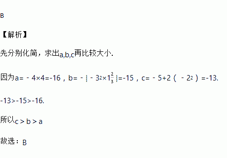 若a=﹣4×4,b=﹣|﹣32×1|,c=﹣5+2(﹣22),则a、b、c的大小关系是( )