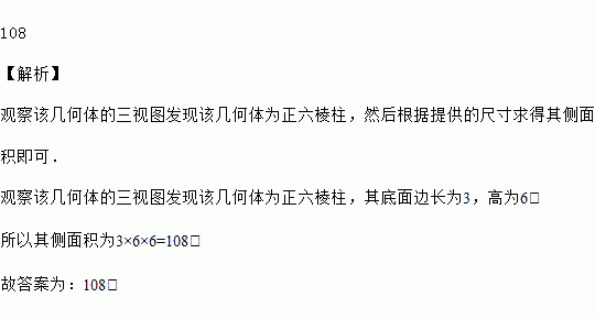 已知某几何体的三视图如图所示,其中俯视图为正六边形,则该几何体的侧面积为_____.