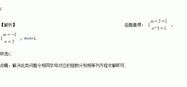 A. ﹣2 B. 2 C. 1 D. ﹣1