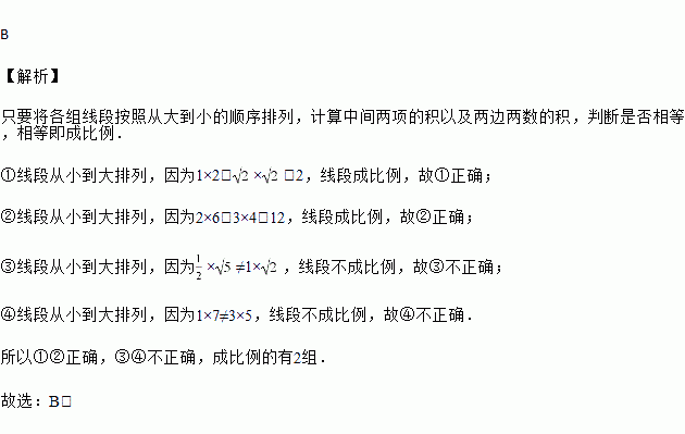 有四组线段,每组线段长度如下:①,,,;②,,,;③,,,;④,,,,能组成比例的有( )