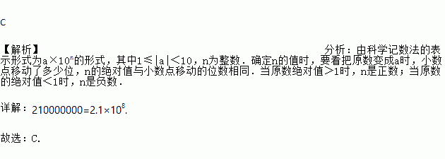 A. 2.1×109 B. 0.21×109 C. 2.1×108 D. 21×107
