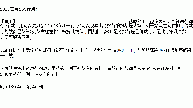 则2018应该排在哪行哪列?