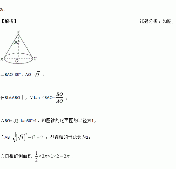 如图,已知圆锥的高为 ,高所在直线与母线的夹角为30°,圆锥的侧面积为_____.