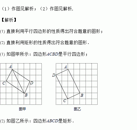 如图,在方格纸中,线段AB的两个端点都在小方格的格点上,分别按下列要求画格点四边形.