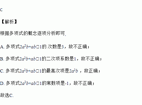 A. 次数是5 B. 二次项系数是0 C. 最高次项是2a2b D. 常数项是1