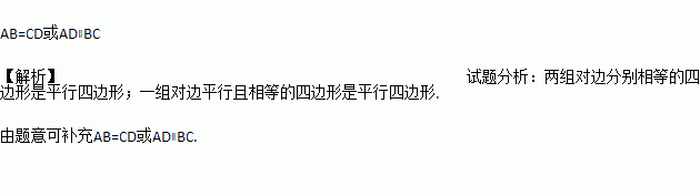 如图,AD=BC,要使四边形ABCD是平行四边形,还需补充的一个条件是: (填一个即可)