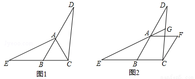 应用:如图②,在菱形ABCF中,∠ABC=60°,延长BA至点D,延长CB至点E,使BE=AD,连结CD,EA,延长EA交CD于点G,求∠CGE的度数.