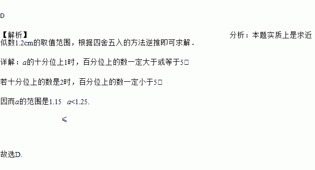 若测得某本书的厚度1.2cm,若这本书的实际厚度记作acm,则a应满足( )