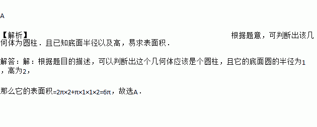 一个空间几何体的主视图和左视图都是边长为2的正方形,俯视图是一个圆,那么这个几何体的表面积是( )