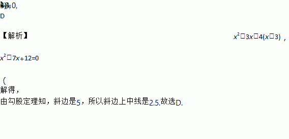 已知一个直角三角形的两条直角边的长恰好是方程x2-3x=4(x-3)的两个实数根,则该直角三角形斜边上的中线长是( )