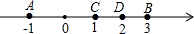 数轴上点A、B的位置如图所示,若点A向右移动2个单位得到点C,则线段BC中点所表示的数为________.