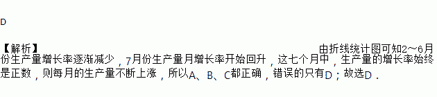 C. 这七个月中,每月生产量不断上涨 D. 这七个月中,生产量有上涨有下跌