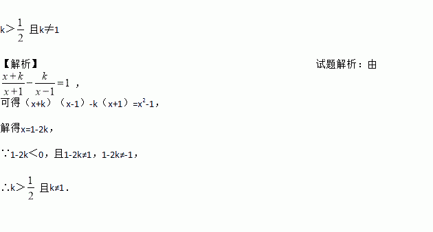 已知关于x的分式方程的解为负数,则k的取值范围是_________
