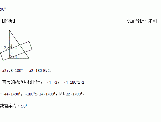 如图11-8,已知长方形纸片的一条边经过直角三角形纸片的直角顶点,若长方形纸片的一组对边与直角三角形的两条直角边相交成∠1,∠2,则∠2-∠1=____.