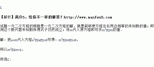 已知m是方程x2﹣x﹣1=0的一个根,则代数式m2﹣m的值等于( )