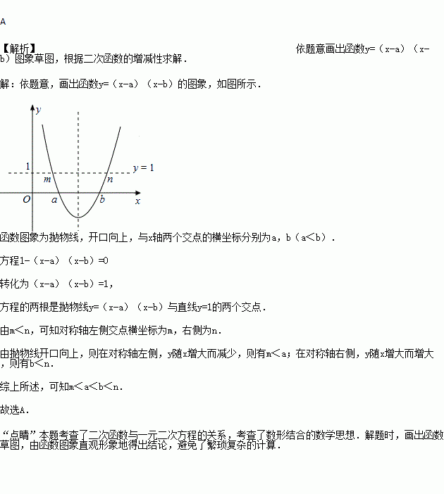 的两根,且a<b,则a、b、m、n的大小关系是【 】