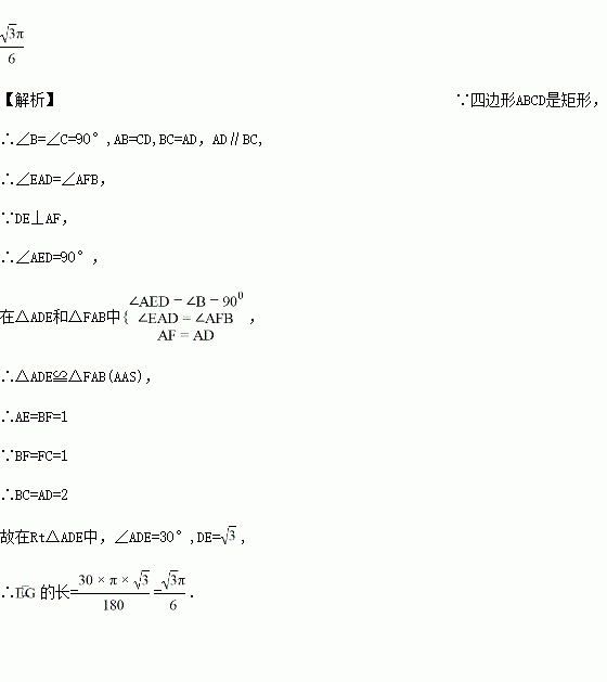 如图,在矩形ABCD中,点F在边BC上,且AF=AD,过点D作DE⊥AF,垂足为点E.以D为圆心,DE为半径作圆弧交AD于点G,若BF=FC=1,则弧的长为 ______ .