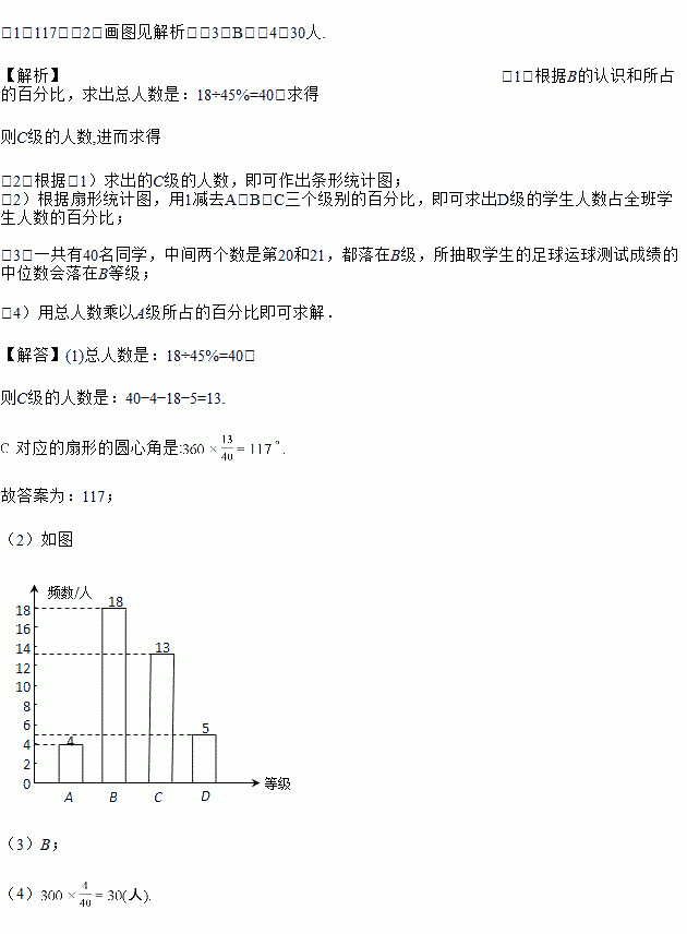 £¨3£©Ëù³éȡѧÉúµÄ×ãÇòÔËÇò²âÊԳɼ¨µÄÖÐλÊý»áÂäÔÚ_______µÈ¼¶£»