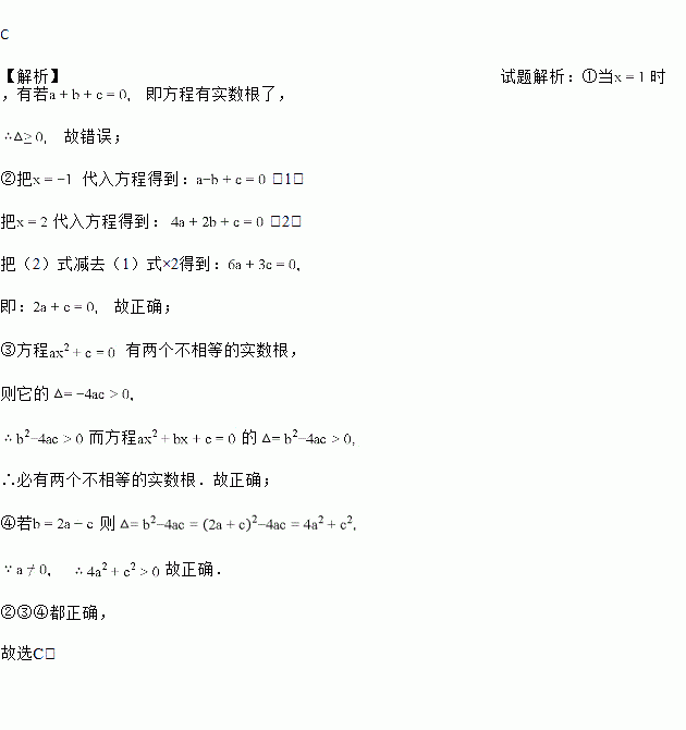 ④若b=2a+c,则方程有两个不相等的实根.其中正确的有( )