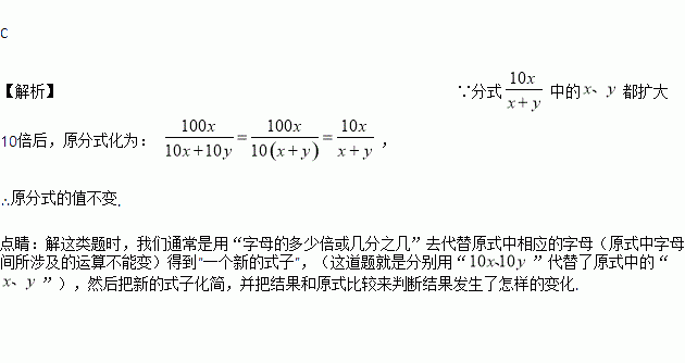 A. 扩大100倍 B. 扩大10倍 C. 不变 D. 缩小到原来的![]()