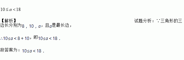 一个三角形的两边长为8和10,则它的最长边的取值范围是________.