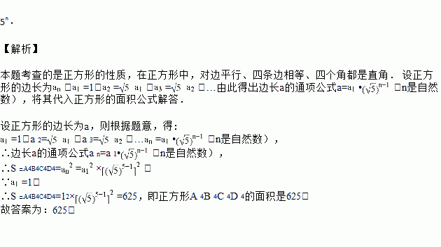 如图(1),已知小正方形ABCD的面积为1,把它的各边延长一倍得到新正方形A1B1C1D1;把正方形A1B1C1D1边长按原法延长一倍得到正方形A2B2C2D2(如图(2));以此下去···,则正方形A4B4C4D4的面积为__________.
