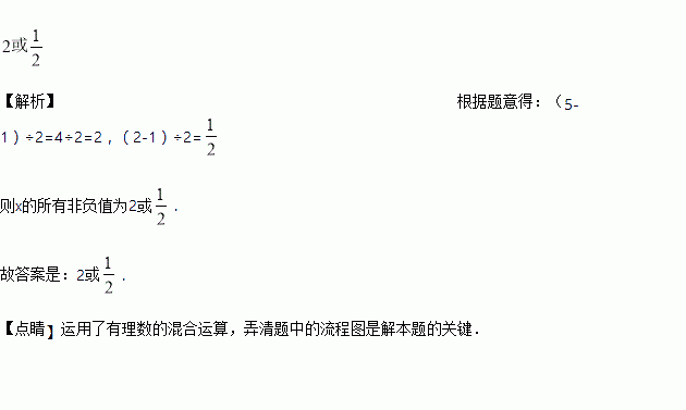 按照下面的流程图进行计算,若输出的结果是5,则的所有非负值为____________.