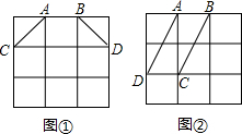 有两个3×3的正方形网格,网格中每个小正方形的边长均为1.请在图①、图②中各画出一个面积为2,且形状不同的四边形.要求:顶点均在网格的格点上,其中一个是轴对称图形但不是中心对称图形,另一个是中心对称图形但不是轴对称图形.