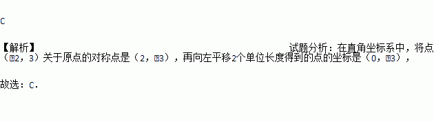在平面直角坐标系中,将点(-2,3)关于原点的对称点向左平移2个单位长度得到的点的坐标是( )