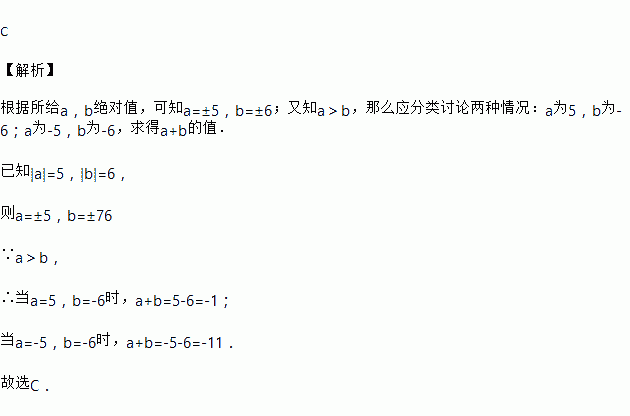 若|a|=5,|b|=6,且a>b,则a+b的值为( )