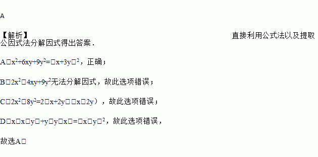 A. x2+6xy+9y2=(x+3y)2 B. 2x2﹣4xy+9y2=(2x﹣3y)2