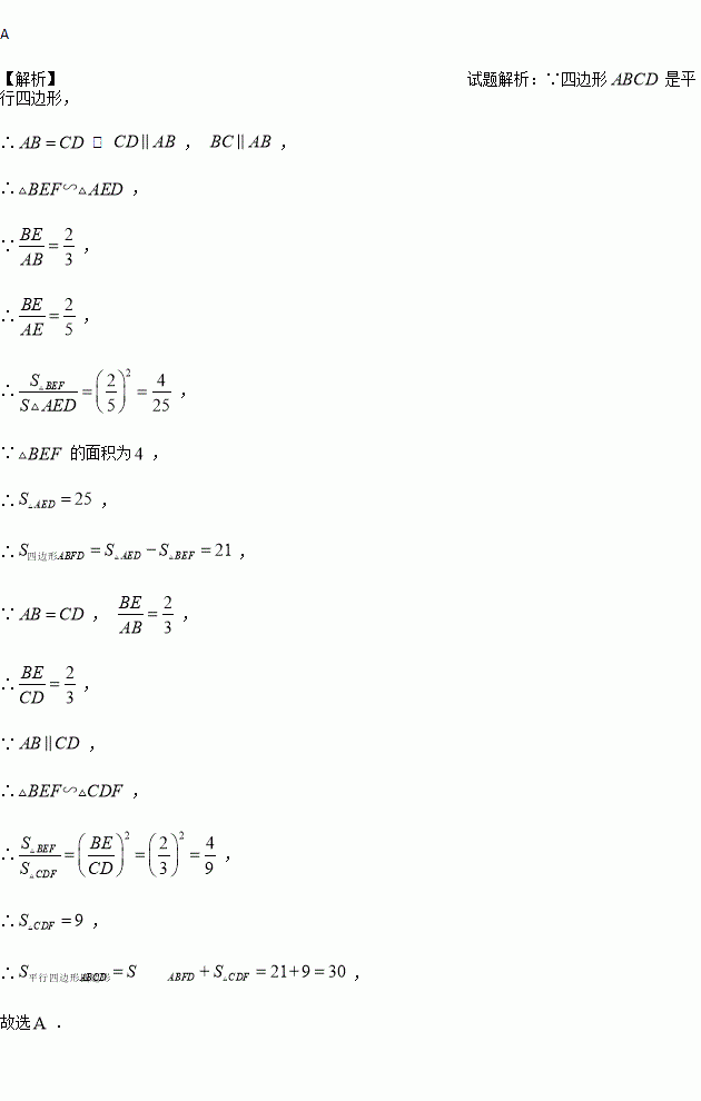 如图, 为平行四边形的边延长线上的一点,且, 的面积为,则平行四边形的面积为( ).